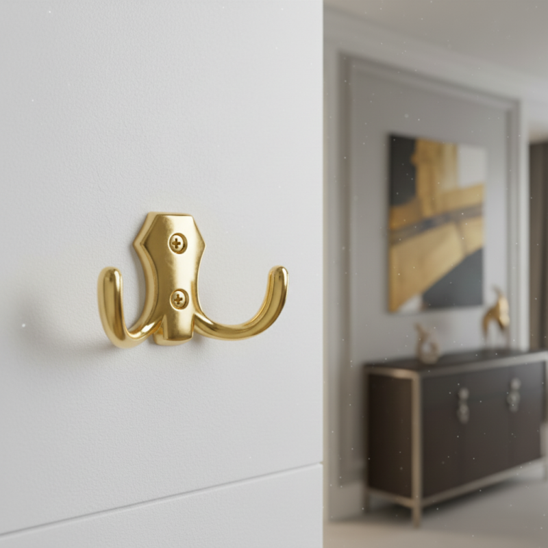 Wandaufhänger für Möbel aus Metall mit Frontbefestigung. Kann mit anderen Größen von Aufhängern im gleichen Design kombiniert werden.