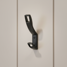 Der Kleiderhaken PAOLOS in schwarzer matter Ausführung ist ein modernes und praktisches Accessoire mit markantem Design. Seine dynamisch geformten Arme mit offenem Detail wirken leicht und zugleich industriell, wodurch er sich hervorragend für moderne, loftartige und minimalistische Innenräume eignet. Die matte schwarze Farbe verleiht dem Haken ein elegantes und zeitloses Aussehen, das sich leicht mit verschiedenen Materialien und Farbausführungen von Möbeln oder Wänden kombinieren lässt.