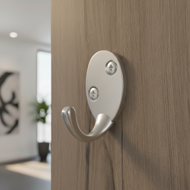 Einfacher, frontseitig montierter Aufhänger mit einer Höhe von 39 mm und einer Breite von 25 mm. Befestigungsschrauben sind im Lieferumfang enthalten.
