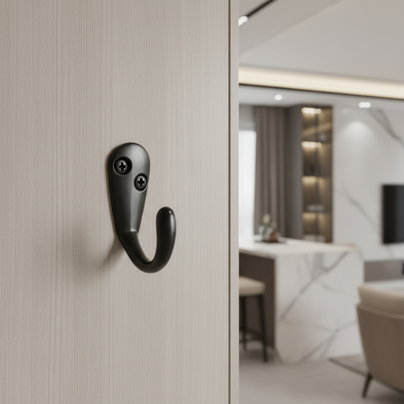 Moderner und eleganter Kleiderhaken LARRA S in mattem Schwarz ist die ideale Wahl für Flur, Bad, Küche oder Büro. Er bietet praktische Nutzung in kompakter Größe und überzeugt gleichzeitig durch sein minimalistisches Design.