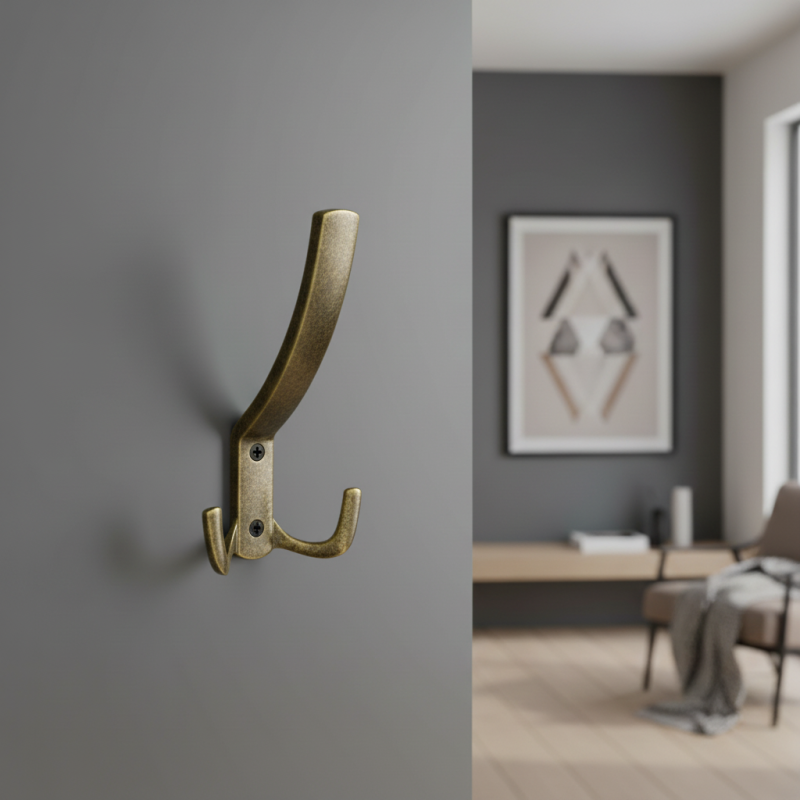 Die altmessingfarbene Oberfläche verleiht dem Haken einen authentischen Vintage-Charakter, der sich wunderbar in rustikale, Retro-, Industrie- und eklektische Interieurs einfügt.