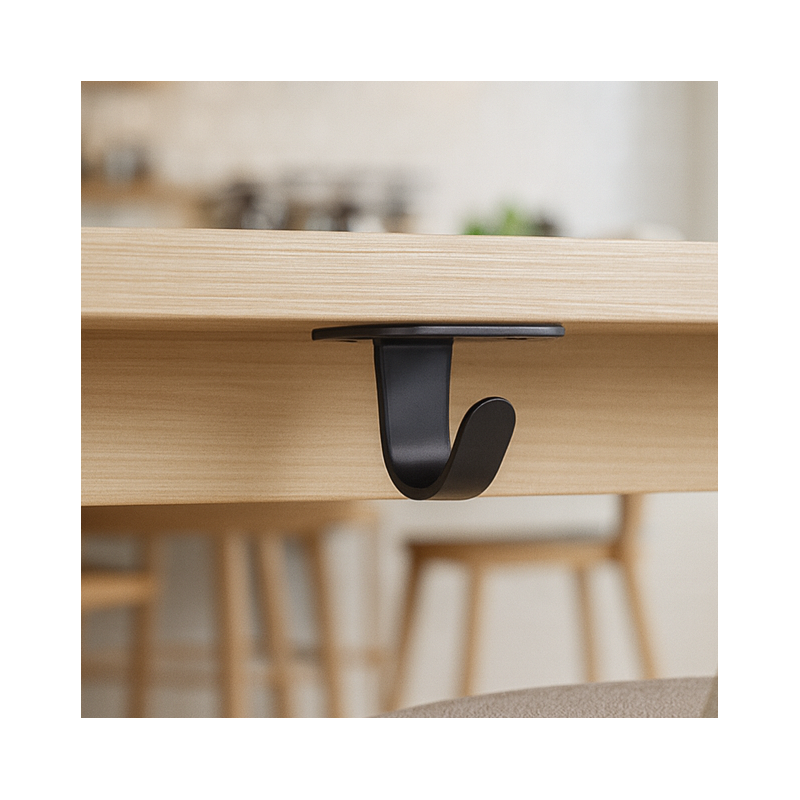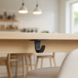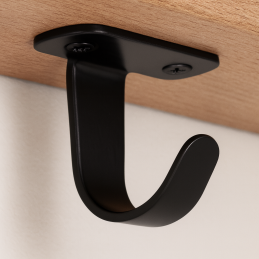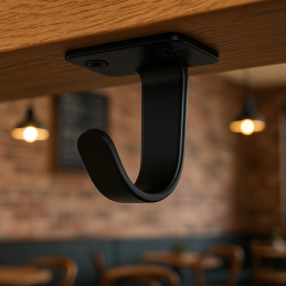 Die Montage erfolgt von der Unterseite, was eine ästhetische und diskrete Lösung garantiert. Der Kleiderbügel ist ideal zum Aufhängen von Handtaschen, Jacken und anderen Gegenständen in einem Café, Restaurant, einer Bar, aber auch in der Küche, der Garage oder im Garten.
