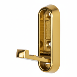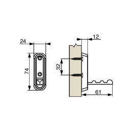 Einfacher Haken mit Frontmontage, Höhe 74 mm und Breite 24 mm. Befestigungsschrauben sind im Lieferumfang des Hakens enthalten. Der Haken lässt sich durch Drücken einfach ausklappen. Der Haken wird auf der Oberfläche montiert und muss nicht in Möbel oder Material eingefräst werden.