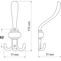 Die Montage erfolgt von vorne mit Schrauben, die eine einfache und stabile Befestigung gewährleisten. Der Haken eignet sich zum Aufhängen von Jacken, Mänteln, Taschen oder Accessoires.