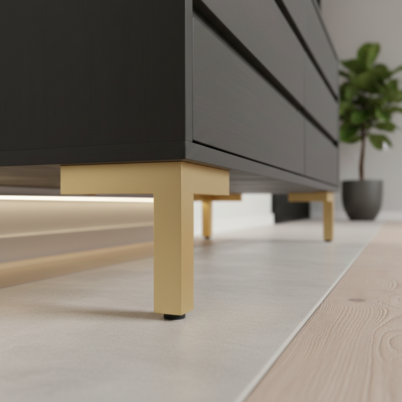 Stilvolles Möbelfuß ANGEL in der Oberfläche Gold matt verleiht Ihren Möbeln ein luxuriöses, elegantes und modernes Aussehen.