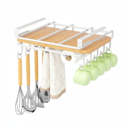Der Halter eignet sich hervorragend zum Ablegen des Schneidebretts, Aufhängen von Geschirrtüchern, Papierrollen, Tassen, Besteck oder kleinen Küchenutensilien. Dank seines modernen, minimalistischen Designs passt er in klassische, moderne und skandinavische Interieurs.