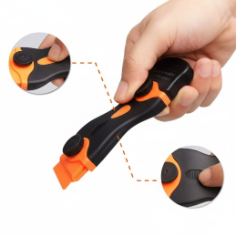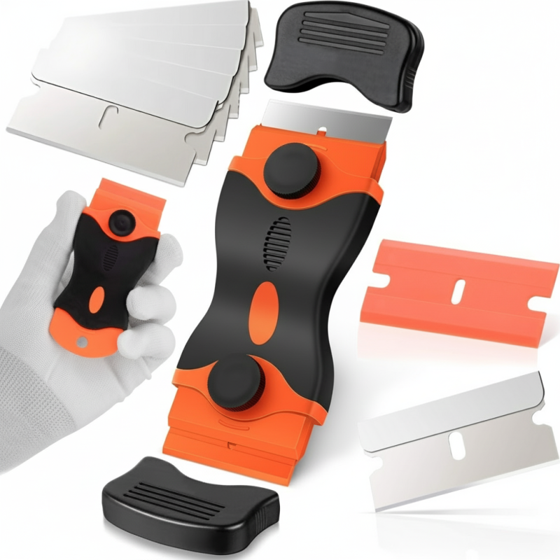 Der Schaber eignet sich auch zum Reinigen von Fenstern, Spiegeln, Duschkabinen, Kaminscheiben, Fliesen oder zum Entfernen von Aufklebern und Kleberesten.