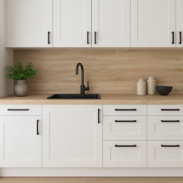 Verleihen Sie Ihrer Küche praktischen Schutz und ein elegantes Aussehen mit unserem Küchenspritzschutz aus hochwertiger Spanplatte, beschichtet mit widerstandsfähigem Laminat. Dieses Material zeichnet sich durch eine hohe Widerstandsfähigkeit gegen Beschädigungen, mechanische Belastung und erhöhte Temperaturen aus, was eine lange Lebensdauer auch bei täglichem Gebrauch garantiert.