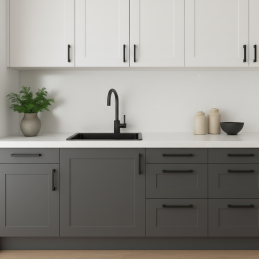 Küchenblock aus Spanplatten mit Laminatbeschichtung. Hohe Widerstandsfähigkeit gegen Beschädigung, Belastung oder hohe Temperaturen während des Gebrauchs.