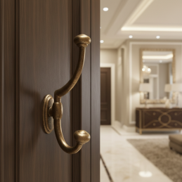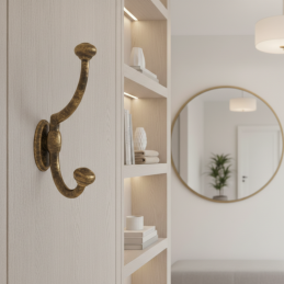Der Haken PLUTO in Alt-Messing-Ausführung ist die ideale Kombination aus Funktionalität und dekorativem Design, die Ihrem Interieur eine warme, rustikale Note verleiht.
