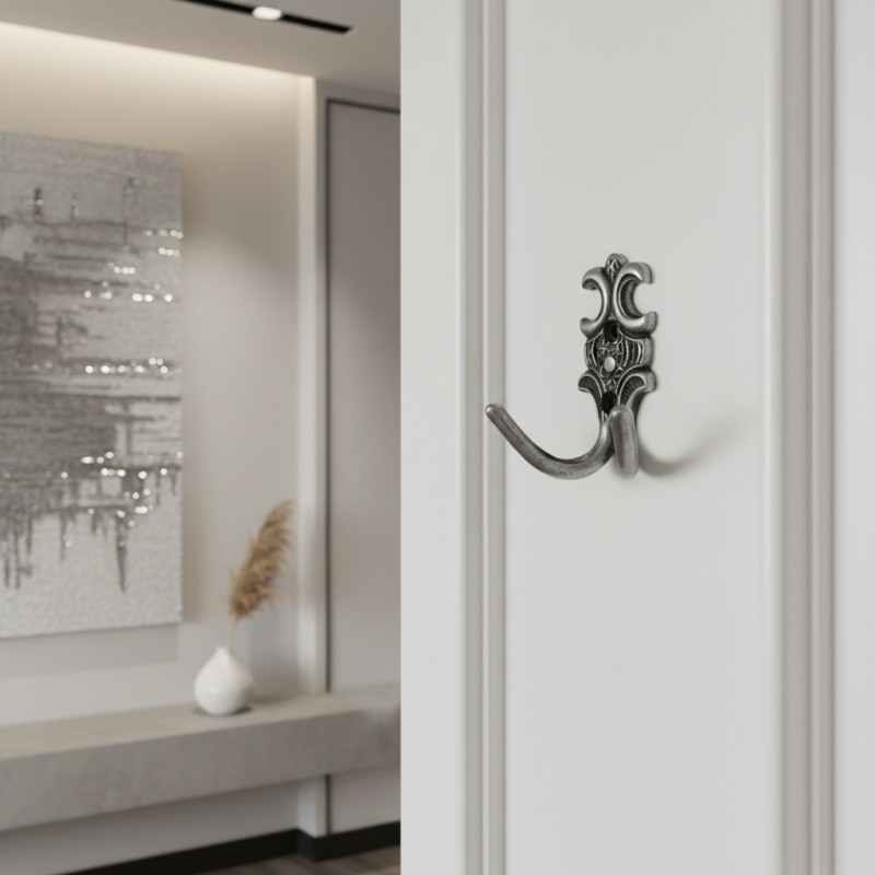 Die Garderobe VERDI MINI in der Oberflächenbehandlung Altbronze ist ein schönes dekoratives Accessoire, das durch feine Reliefdetails und klassisches handwerkliches Aussehen besticht. Die kleine Größe wird mit einem markanten Design kombiniert, wodurch sie als stilvoller Akzent im Innenraum wirkt – selbst auf den kleinsten Flächen.