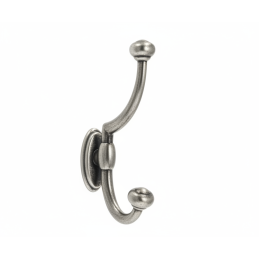 Rustikaler Kleiderhaken PLUTO in eleganter Ausführung Alt-Silber ist ein praktisches und dekoratives Accessoire für klassisch sowie rustikal gestaltete Innenräume. Die dezent patinierte silberne Oberfläche verleiht dem Haken ein authentisches Aussehen und unterstreicht sein zeitloses Design mit zwei Haken.