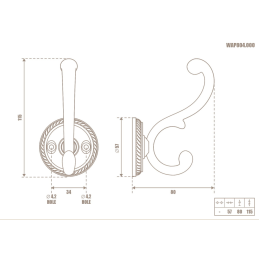 Der Haken ist für die Frontmontage an Wand oder Möbel vorgesehen, wobei die Montagelöcher sichtbar und natürlich in das Design der Rosette integriert sind. Die hochwertige Metallverarbeitung sorgt für hohe Festigkeit, Stabilität und eine lange Lebensdauer auch bei täglichem Gebrauch.