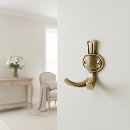 Der Kleiderhaken VATERLO in Altgold-Ausführung ist die ideale Wahl für Innenräume mit Fokus auf Tradition, Detail und zeitlosem Stil.
