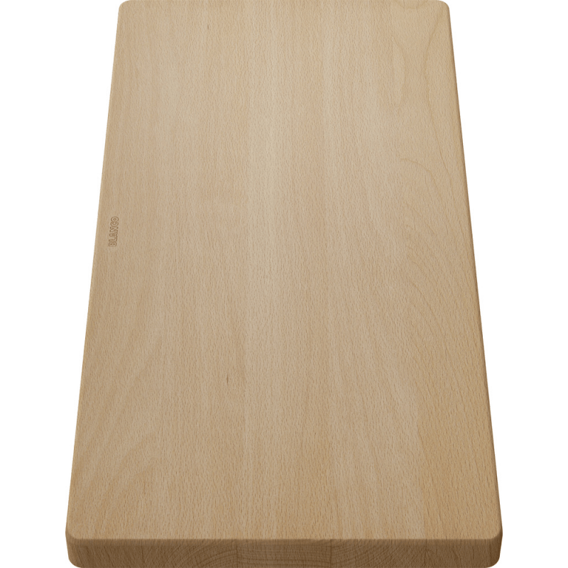 Blanco Schneidebrett aus massivem Buchenholz schafft eine praktische Arbeitsfläche direkt über dem Spülbecken. Es ermöglicht bequemes Schneiden von Gemüse, Fleisch oder Käse, wobei Säfte und Reste direkt in die Spüle fallen und die Arbeitsplatte nicht verschmutzen.