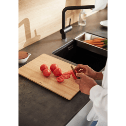 Dieses hochwertige Schneidebrett ist speziell für die Spülenmodelle BLANCO Solis konzipiert. Es passt perfekt an die Ränder der Spüle und schafft so eine stabile und komfortable Arbeitsfläche direkt über dem Becken. Dadurch wird der Platz in der Küche effizient genutzt und die Zubereitung von Lebensmitteln erheblich erleichtert.
