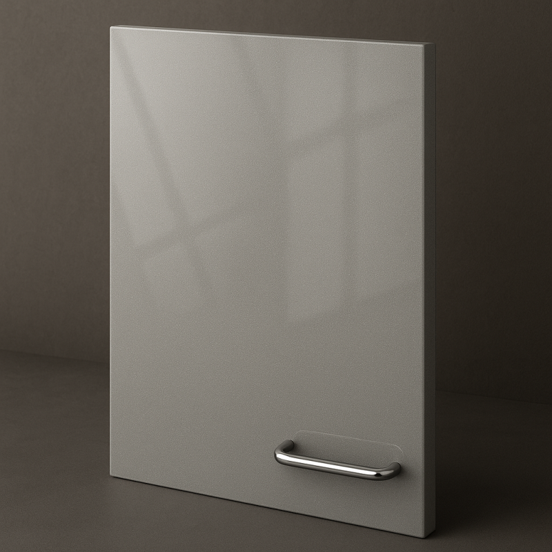 Verleihen Sie Ihrem Interieur ein modernes und elegantes Aussehen mit MDF-Fronten, die mit hochwertiger SENOSAN-Folie im Farbton Hellgrau Metallic SCR 85385 beschichtet sind.