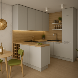 Moderner Stil, dezente Eleganz und perfekte Funktionalität – all das vereinen MDF-Fronten, beschichtet mit der Premium-Supermattfolie SENOSAN im Farbton Lichtgrau SCR 85468.