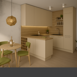 Bringen Sie sanfte Eleganz und natürliche Wärme in Ihr Interieur mit MDF-Fronten, beschichtet mit hochwertiger supermatter SENOSAN-Folie im Farbton Beige SCR 7496.