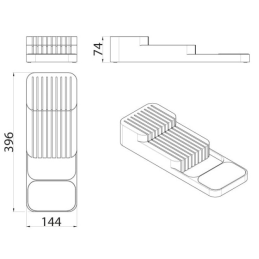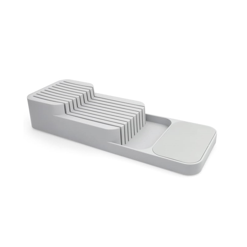 Dank spezieller Rillen ermöglicht er die Aufbewahrung mehrerer Messer unterschiedlicher Größen. Das moderne Design und die kompakten Maße sorgen dafür, dass der Halter nicht unnötig viel Platz einnimmt und in die meisten Standard-Küchenschubladen passt.