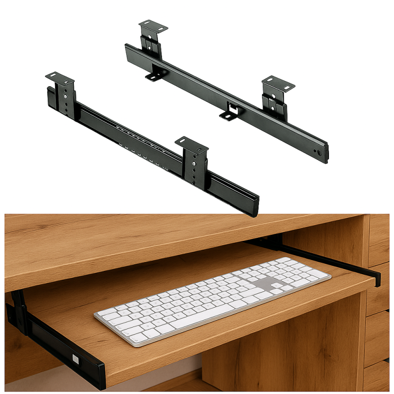 409 mm lange Tastaturauszüge für die Untertischmontage. Höhenverstellbar von 55 - 90 mm