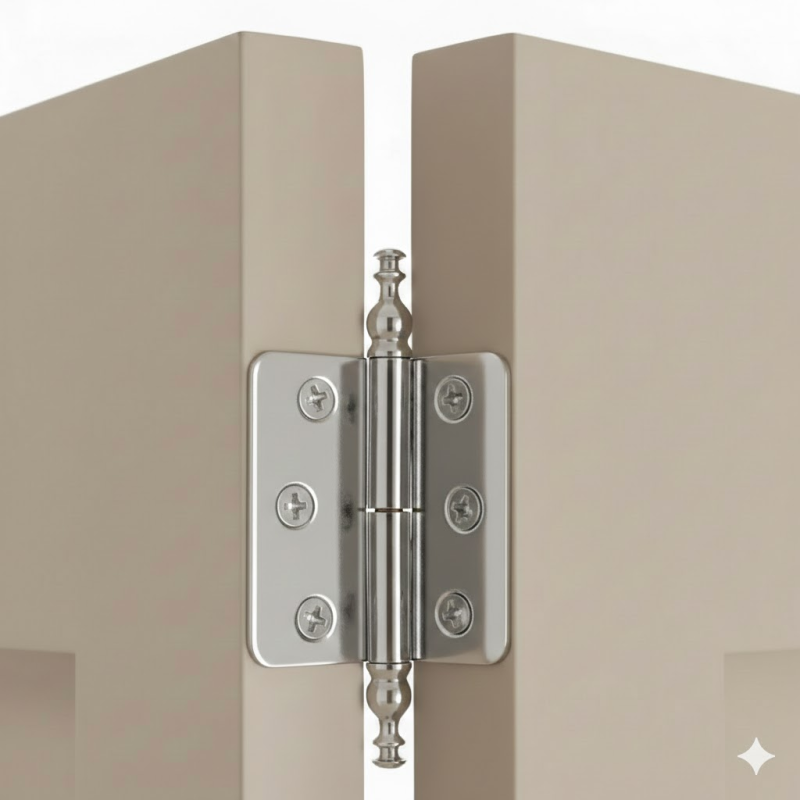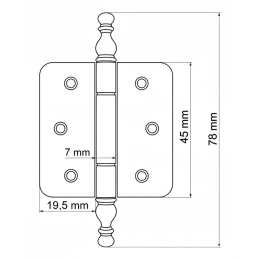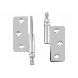 Dekorativer Flügelscharnier 78 mm in modernem Design glänzendes Chrom ist das ideale Zubehör für Möbel, die eine Verbindung von Funktionalität und elegantem Design erfordern. Das dekorative Ende des Bolzens verleiht Türen und Schränken ein stilvolles Detail, während das Scharnier gleichzeitig eine feste und zuverlässige Befestigung gewährleistet.