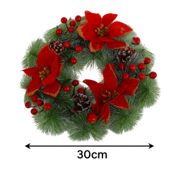 Dieser elegante Weihnachtskranz bringt sofort Wärme, Gemütlichkeit und festliche Atmosphäre in Ihr Zuhause. Hängen Sie ihn einfach an die Tür, legen Sie ihn auf den Tisch oder platzieren Sie ihn über dem Kamin – und in wenigen Sekunden schaffen Sie eine zauberhafte Dekoration, die Sie und Ihre Gäste erfreuen wird.