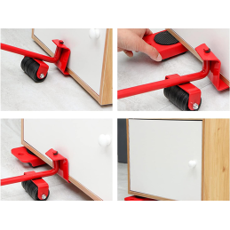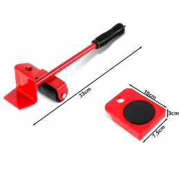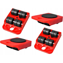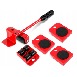 Das Set besteht aus 4 Transportrollen, die jeweils mit Rädern ausgestattet sind, die ein einfaches Manövrieren ermöglichen. Diese Rollen haben eine rutschfeste Oberfläche, die während des gesamten Transfers für Stabilität sorgt. Zum Set gehört auch ein spezielles Hebewerkzeug - der Hebelheber. Damit können Sie das Möbelstück mühelos anheben und die Transportrollen unter das Möbelstück stellen. Selbst die schwersten Gegenstände lassen sich so leicht handhaben.