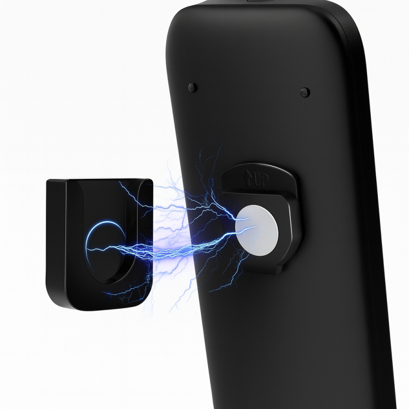 Die Halterung verwendet ein doppeltes Befestigungssystem – eine Kombination aus starkem Magneten und praktischem Einschubslot. So bleibt Ihre Fernbedienung sicher an ihrem Platz, ohne Risiko von Herunterfallen oder Beschädigung.