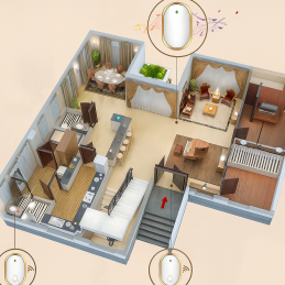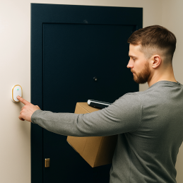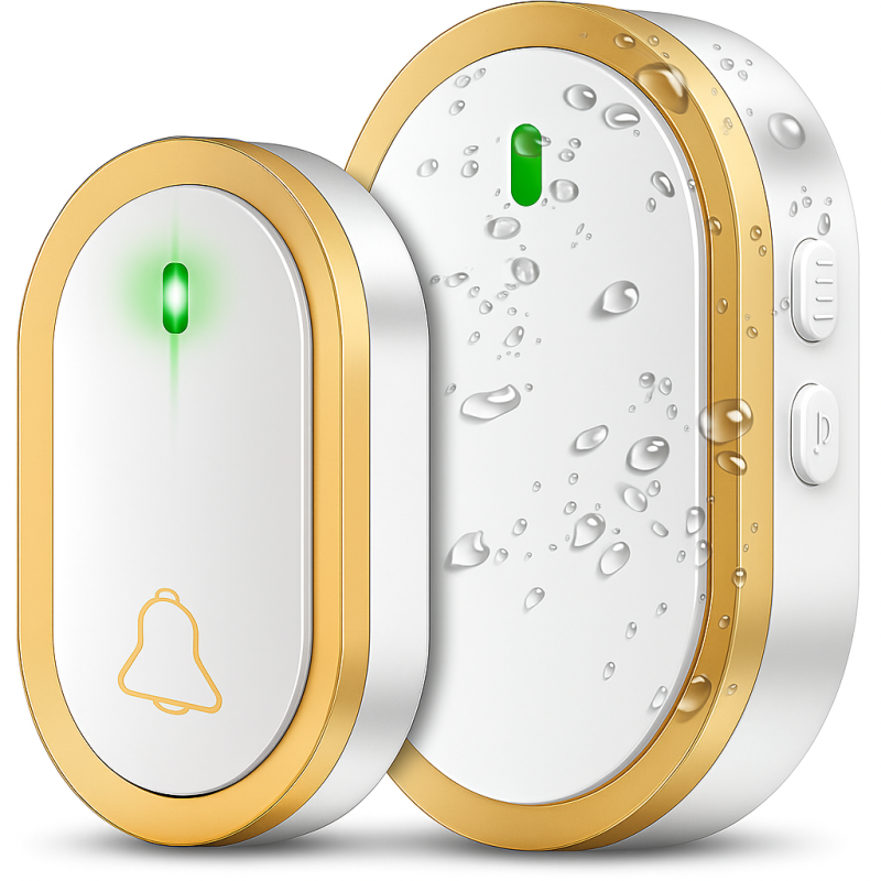 Dank des wasserdichten Tasters mit IP44-Zertifizierung eignet sie sich für die Außenmontage, und ihre Reichweite von bis zu 300 Metern im freien Gelände ermöglicht auch die Nutzung als Klingel für das Tor oder die Garage.