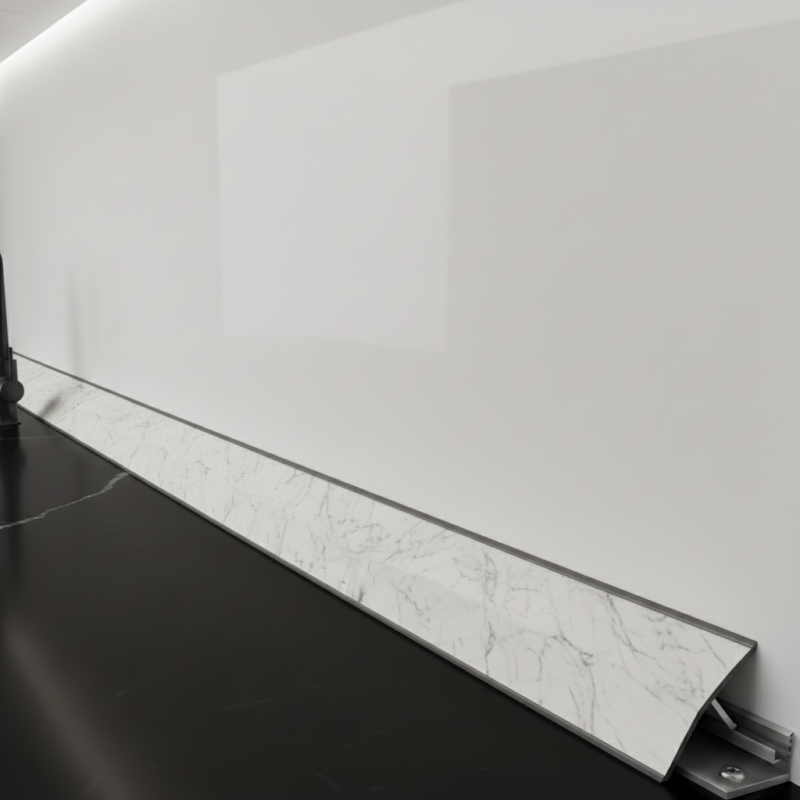 Die Leiste verfügt über eine Dichtung an der Ober- und Unterseite, was perfekte Dichtheit, lange Lebensdauer und einen eleganten Übergang zwischen Platte und Wand gewährleistet.