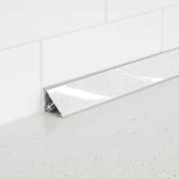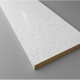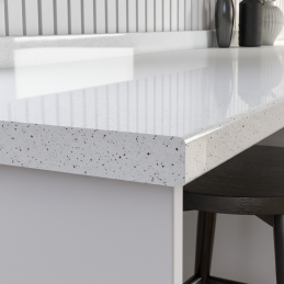 Moderne und elegante KRONOSPAN Arbeitsplatte im Dekor Andromeda Weiß Hochglanz (K217 GG) ist die ideale Wahl für alle, die sich eine saubere, helle und luxuriöse Küche wünschen. Die Oberfläche mit feinem Glitzereffekt erinnert an Sternenstaub und verleiht dem Interieur einen außergewöhnlichen Glanz und Tiefe.
