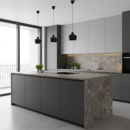 Dieses Dekor ist ideal für minimalistische, industrielle sowie moderne Küchen oder Bäder, wo es dem Raum ein luxuriöses und zeitloses Aussehen verleiht.