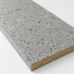 Die Arbeitsplatte EGGER Terrazzo Triestino Grau (F021 ST75) bringt zeitlosen italienischen Stil in den Innenraum. Das Dekor erinnert an traditionelles Terrazzo – eine Mischung aus Naturstein mit feinen Strukturen und unregelmäßigen Fragmenten in Grau-, Weiß- und Schwarztönen. Dadurch wirkt sie elegant, modern und lässt sich hervorragend mit Holz, Beton sowie minimalistischen glatten Oberflächen kombinieren.