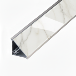 Die luxuriöse und moderne Abschlussleiste KRONOSPAN im Dekor Calacatta Olympus (K551 SU) ist für den professionellen und präzisen Abschluss von Arbeitsplatten bestimmt. Die Leiste dichtet die Verbindung zwischen Arbeitsplatte und Wand zuverlässig ab und verhindert so wirksam das Eindringen von Wasser und Schmutz. Gleichzeitig verleiht sie der Küche ein elegantes und zeitloses Aussehen von weißem Marmor mit feiner grauer Maserung.