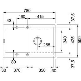 Bohrung für Armatur: 4 Stellen zum Bohren (Armatur, Seifenspender, Ablaufsteuerung)