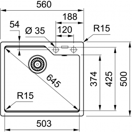 • Außenmaße der Spüle: 560 × 500 mm