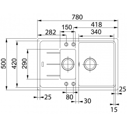 Außenmaß des Spülbeckens: 780 × 500 mm