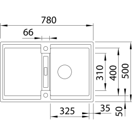 Außenmaß der Spüle: 780 × 500 mm