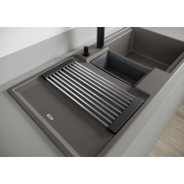 Dieses Modell bietet die ideale Kombination aus Geräumigkeit, Widerstandsfähigkeit und modernem Design. Silgranit® garantiert eine lange Lebensdauer und einfache Pflege, während zwei Becken und die Abtropffläche perfekten Komfort beim Kochen und Aufräumen bieten.