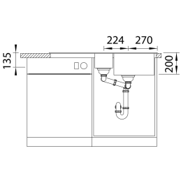 Zwei Becken – das Hauptbecken mit einer Tiefe von 200 mm und das kleinere mit einer Tiefe von 135 mm für mehr Flexibilität.