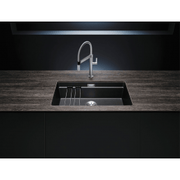 Blanco Etagon 700-U ist ein moderner und hochwertiger Granit-Küchenspüle, der ein geräumiges Becken mit dem innovativen ETAGON-System kombiniert. Dank der universellen ETAGON-Schienen bietet er eine dritte Arbeitsebene und macht aus der Spüle ein vollwertiges Spülzentrum mit besonders effizienter Raumausnutzung.