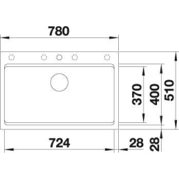 Gesamtabmessungen der Spüle: 780 × 510 mm – geeignet für die meisten Standard-Küchenzeilen.