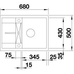 Außenmaße der Spüle: 680 × 500 mm