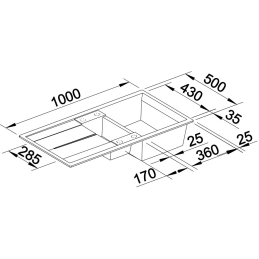 Großzügige Spülenmaße: 1000 × 500 mm – ausreichend Arbeitsfläche.