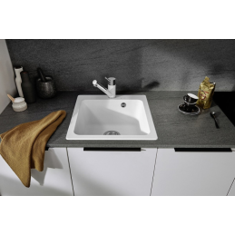 Vorbereitete Öffnungen – 1 gebohrtes Loch + 2 vorgestanzte Löcher zum Ausbrechen für Armatur oder Zubehör.