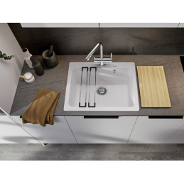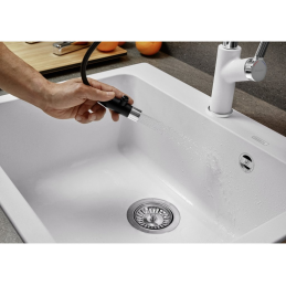 Blanco Naya 6 ist ein moderner Granit-Küchenspüle, der durch klare Linien und eine harmonische Form besticht. Er ist so konzipiert, dass er maximalen Komfort bei der täglichen Küchenarbeit bietet und sich gleichzeitig perfekt in ein modernes Interieur integriert.
