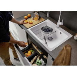 Blanco Naya 6 ist ein modernes Granit-Küchenspülbecken, das durch klare Linien und eine harmonische Form besticht. Es ist so konzipiert, dass es maximalen Komfort bei der täglichen Küchenarbeit bietet und sich gleichzeitig perfekt in ein modernes Interieur integriert.
