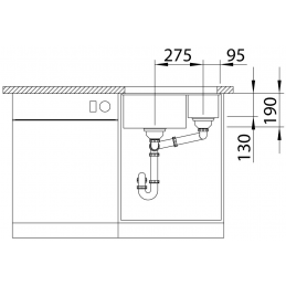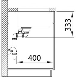 Zusatzbecken: 160 × 400 mm, Tiefe 130 mm