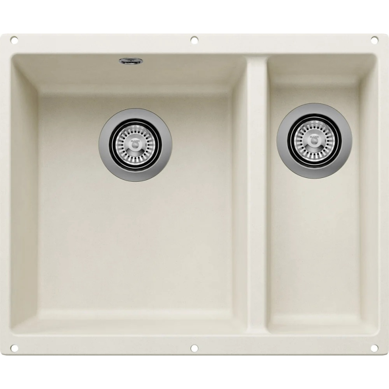 Blanco Rotan 340/160-U bringt Flexibilität, Eleganz und ein modernes Erscheinungsbild ohne störende Ränder in die Küche. Dieses Granitspülbecken für Unterbau (U) ist für Unterschränke mit einer Breite ab 60 cm konzipiert und bietet eine praktische Doppelbecken-Lösung für komfortable tägliche Arbeiten.